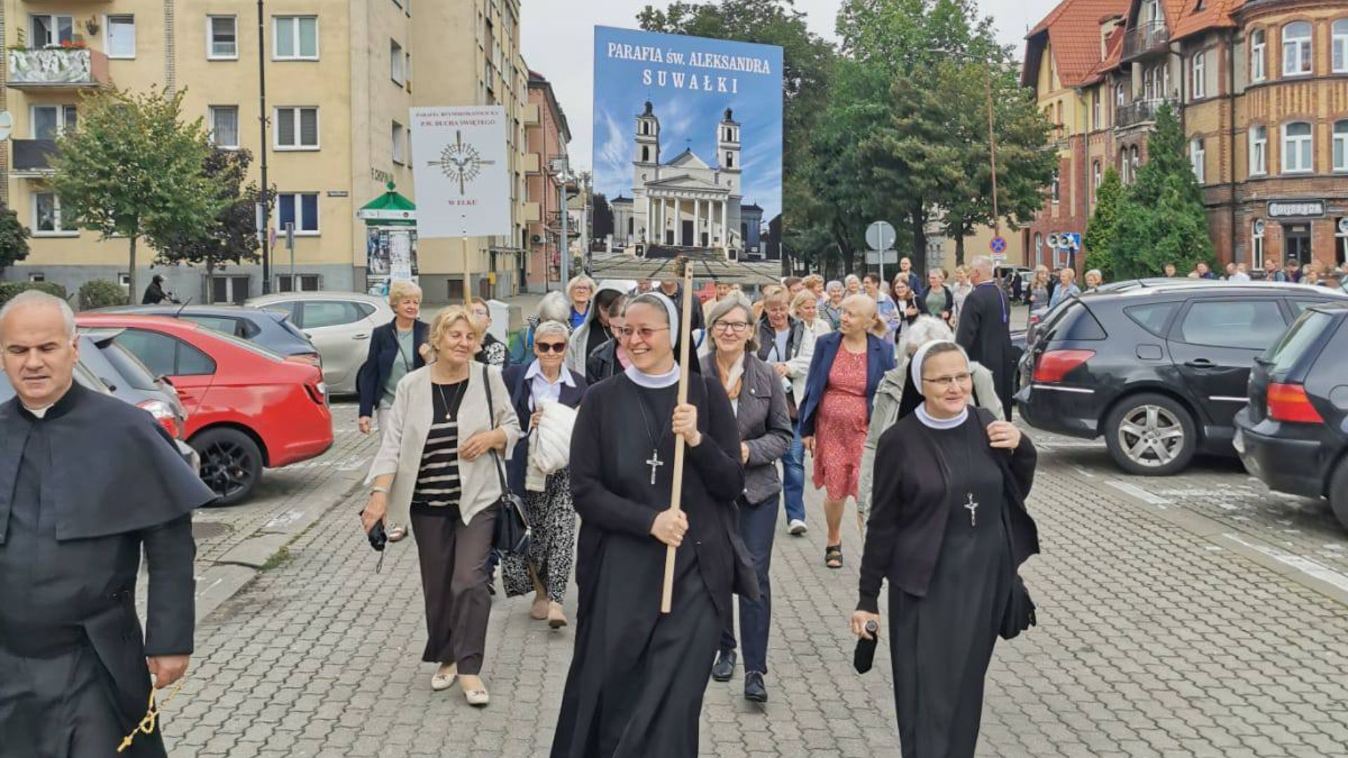 Druga część jubileuszu miała charakter pielgrzymkowy. Wspólnoty i ruchy wyruszyły z katedry w kierunku parafii pw. św. Rafała Kalinowskiego w Ełku, odmawiając po drodze modlitwę różańcową.